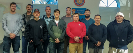 ![]() Local 234 congratulates 2018 inside apprenticeship graduates. From left: Nicholas Karakas, William Clough, Ruben Lozano, Instructor Jim Shumaker, Austin Pless, Beau Kelly, Wallace Barnes, Gerardo Espinoza, Chris Swim and Nick Luczak. |