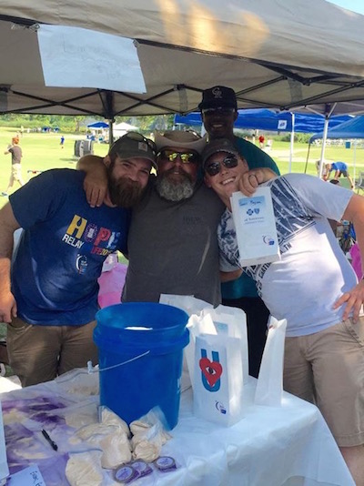 | Zack Ballard, Toby Shelton, Darius Long, and Zac Painter of Local 175 RENEW volunteering at Chattanooga’s Relay for Life.